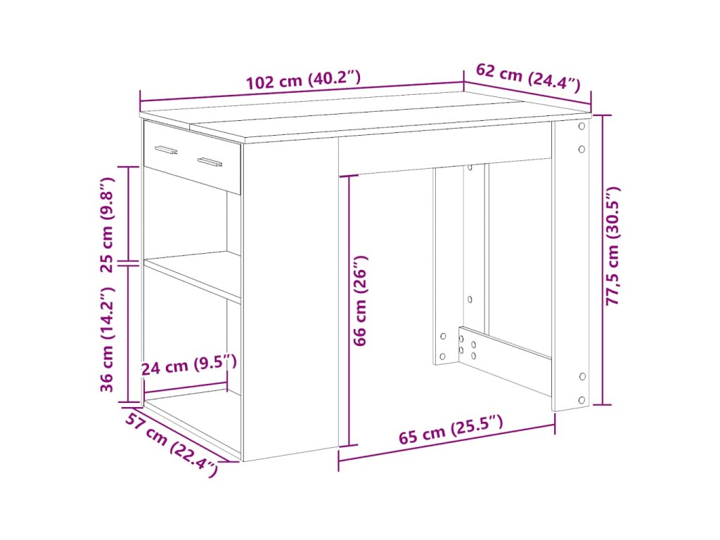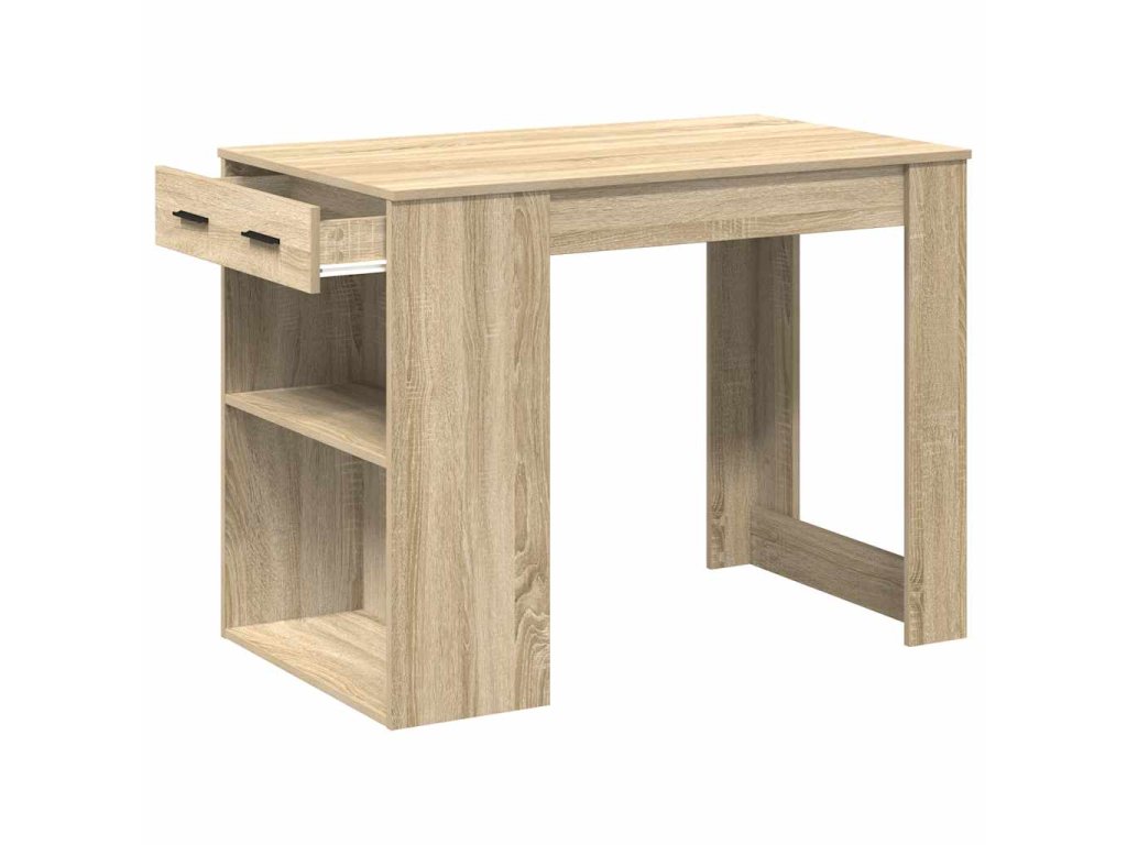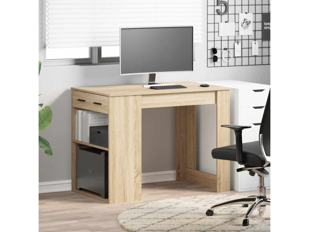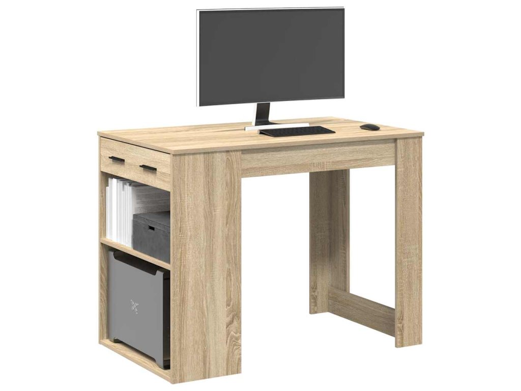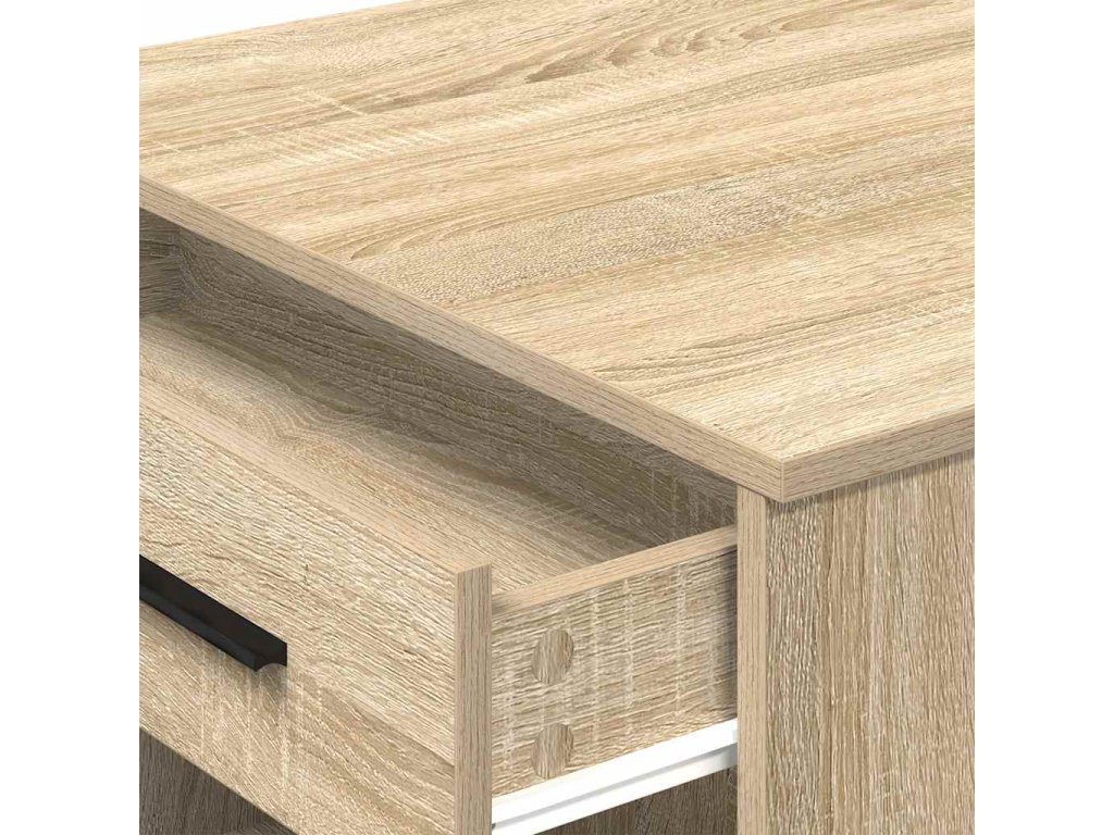 - Dostatek úložného prostoru: Stůl poskytuje dostatek úložného prostoru díky zásuvkám a otevřeným policím, které umožňují uspořádat a vystavit předměty, jako jsou počítačové skříně, knihy, dokumenty nebo dekorativní předměty, a udržet tak váš obývací prostor bez nepořádku.