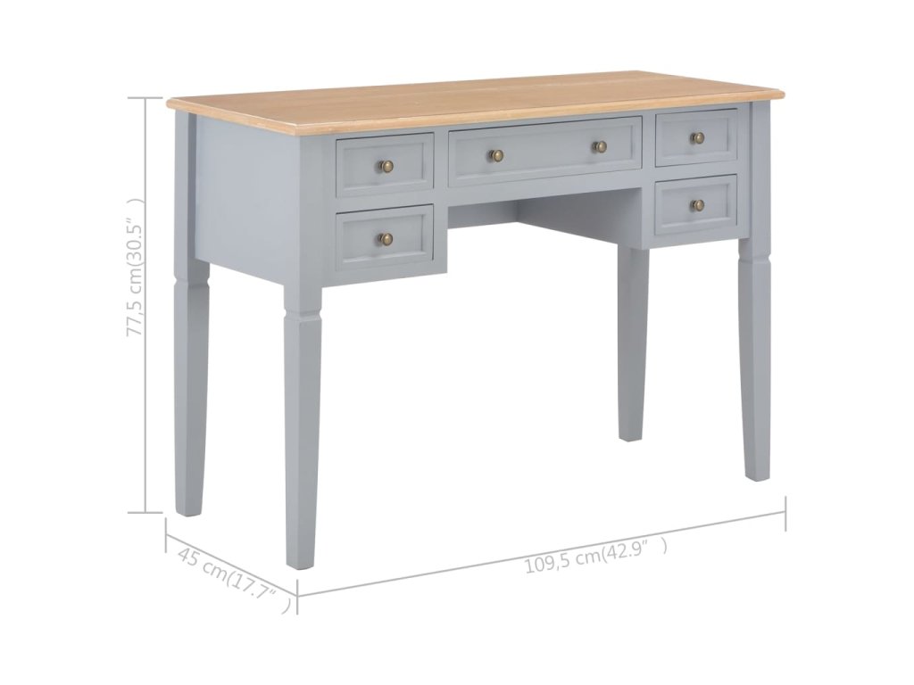 Tento bytelný psací stůl je vyrobený z vysoce kvalitní MDF a borového dřeva s šedým nátěrem.