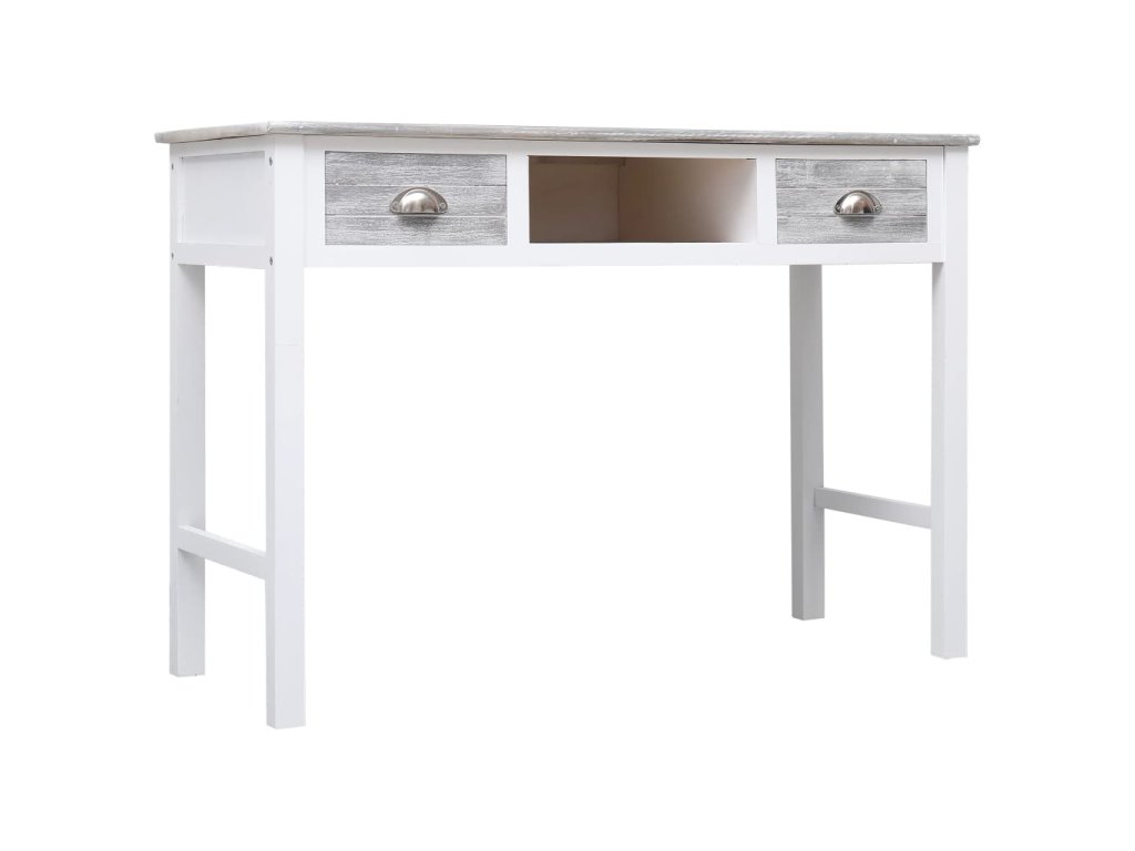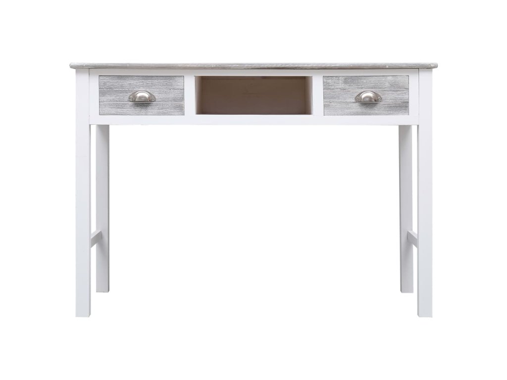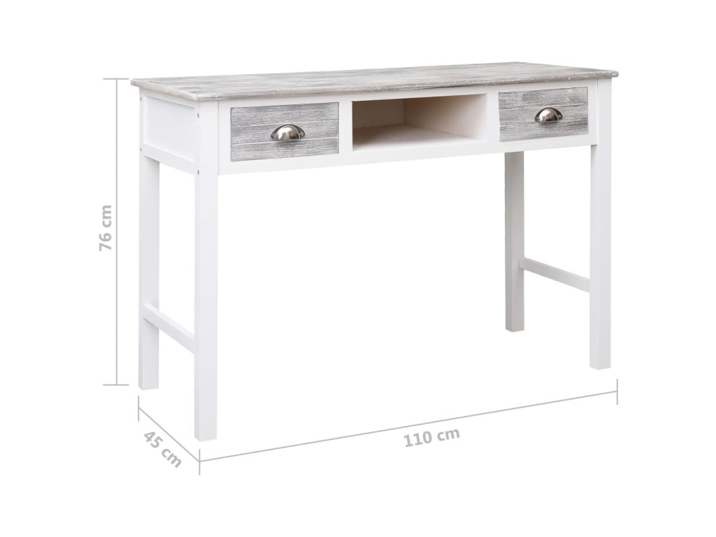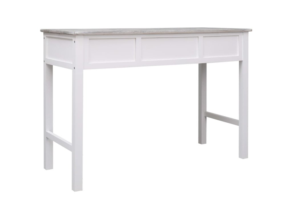 Psací stůl je vyroben z kvalitního dřeva pavlovnie a topolu, je tedy mimořádně odolný a stabilní. Má 2 zásuvky a mezi nimi 1 otevřenou poličku, kam si můžete ukládat nejrůznější písemnosti a další nezbytné kancelářské potřeby, abyste v nich měli pořádek a snadno se k nim dostali.