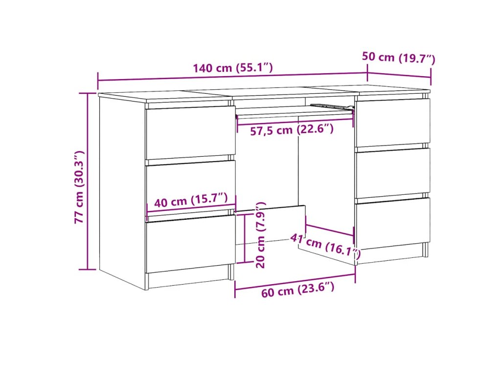 - Rozměry: 140 x 50 x 77 cm (Š x H x V)
