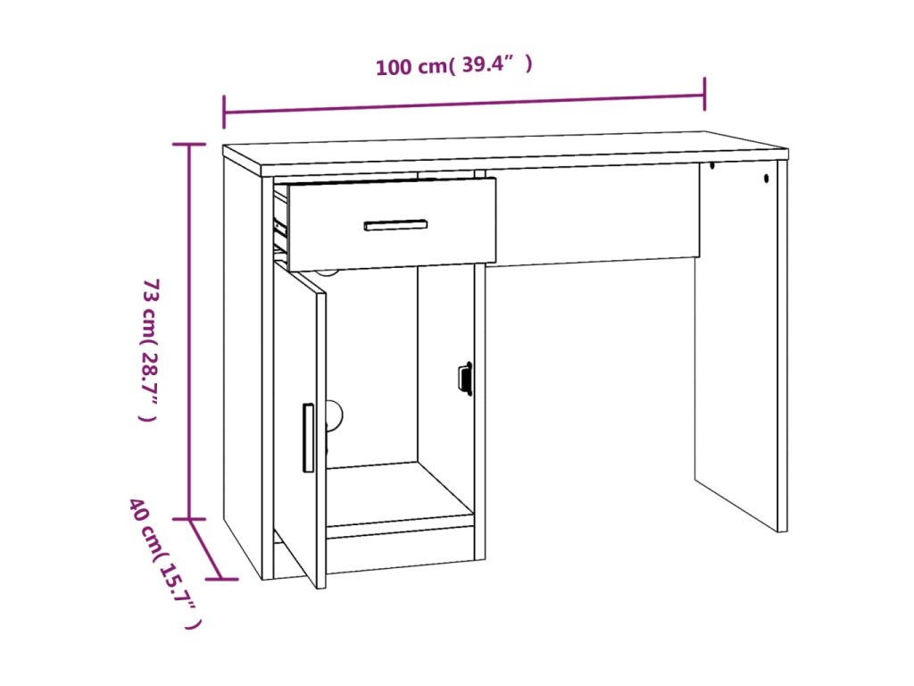 Tento jednoduchý, ale stylový psací stůl s 1 zásuvkou a skříňkou bude praktickým doplňkem každé domácnosti nebo kanceláře.