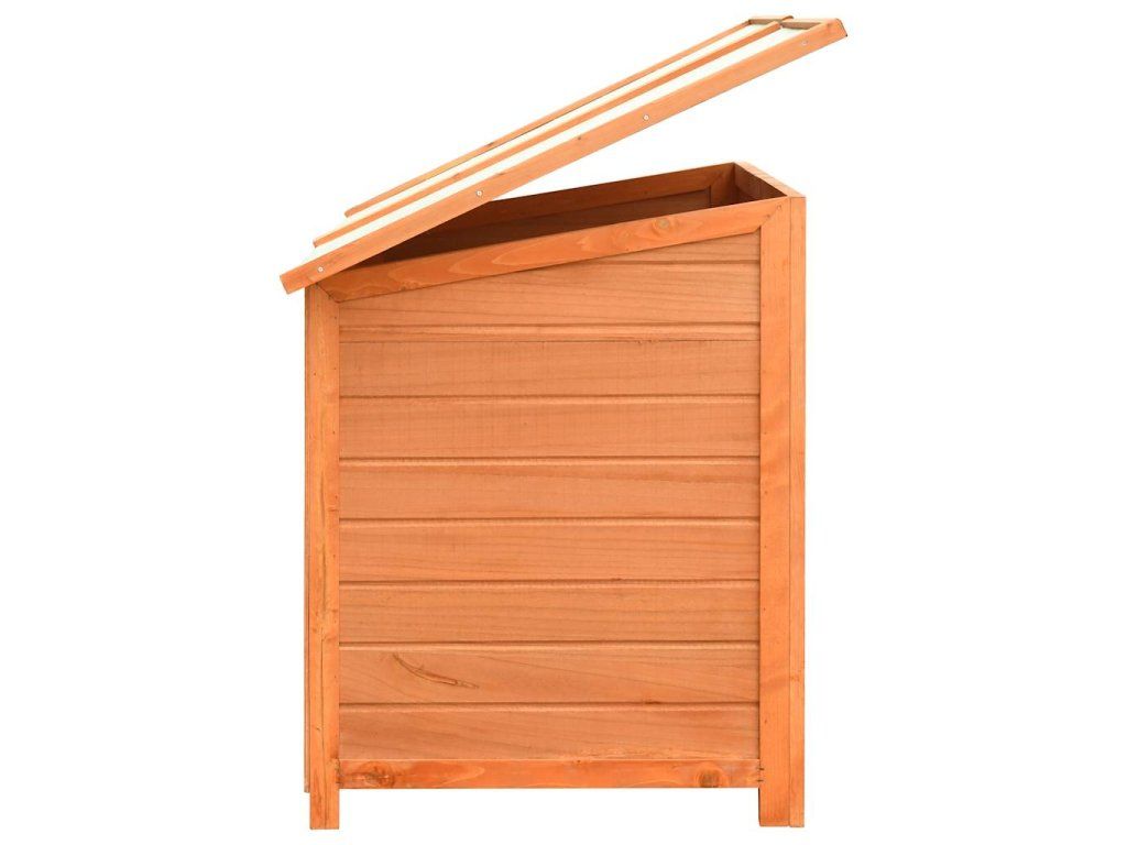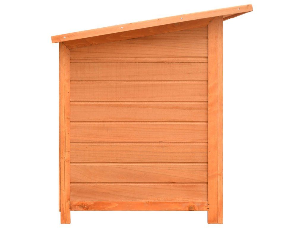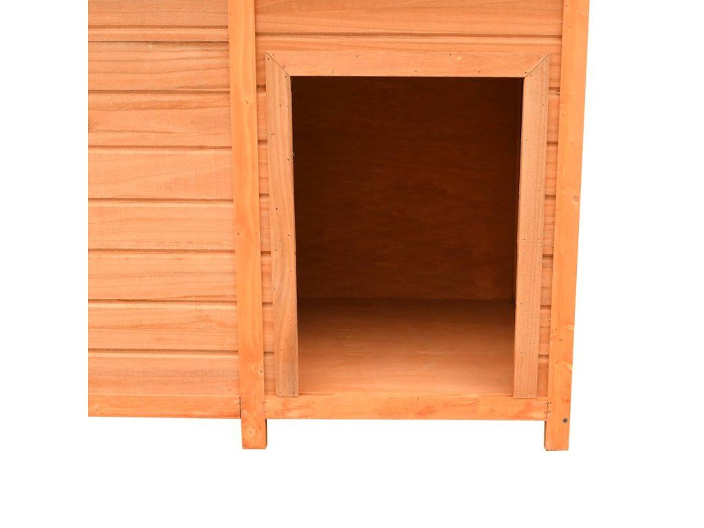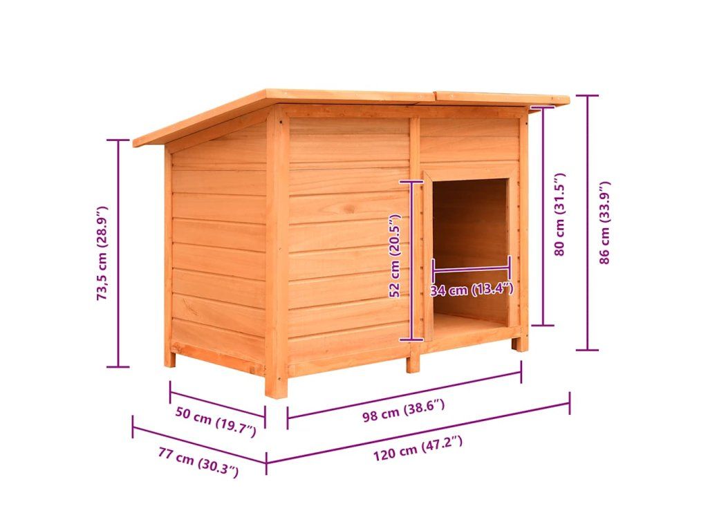 Psí bouda má rám z masivního dřeva, takže je pevná a odolná. Zelená tkanina, jež pokrývá střechu, je odolná vůči vlivům počasí a zamezuje vniku deště. Dřevěný kotec vnese do vaší zahrady rustikální kouzlo. Jeho sestavení je snadné.