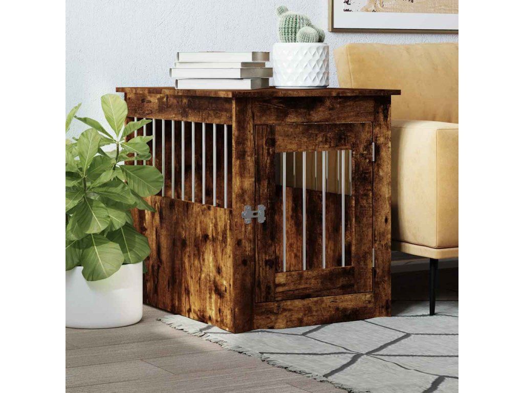 Tato psí bouda, která slouží jako klec pro psa i jako odkládací stolek, je praktickým a poutavým doplňkem vašeho obývacího pokoje.