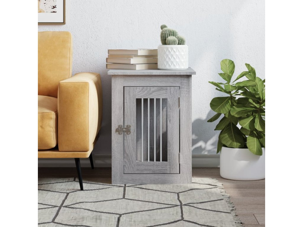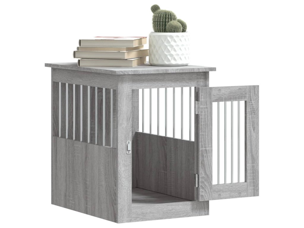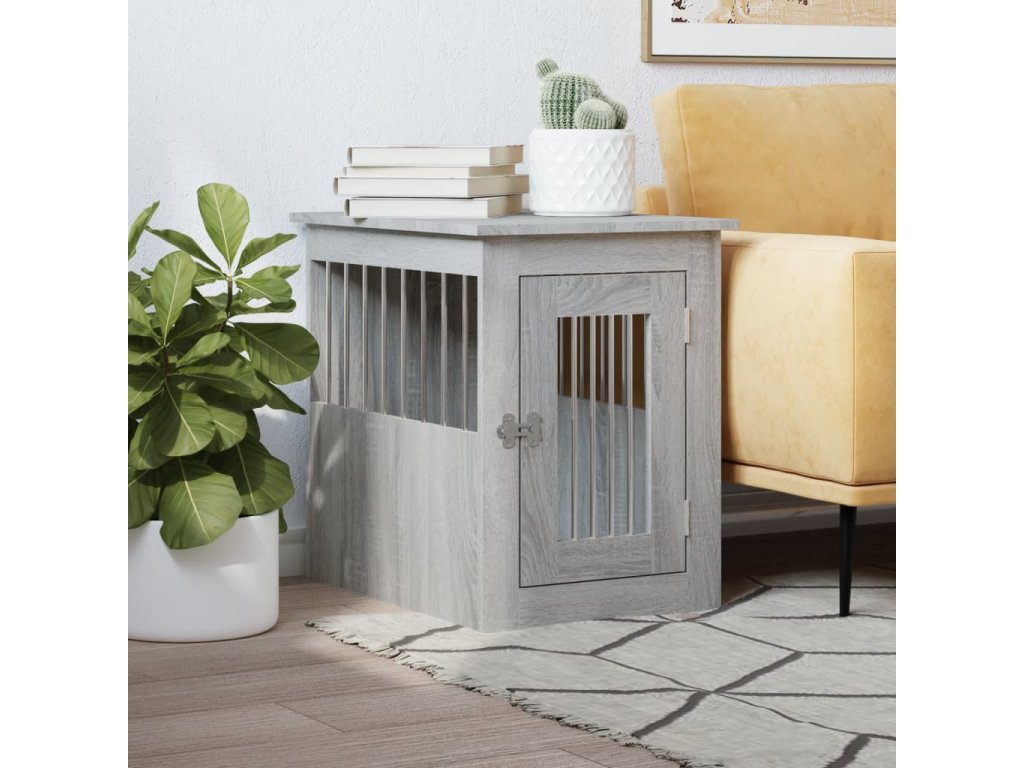 Tato psí bouda, která slouží jako klec pro psa i jako odkládací stolek, je praktickým a poutavým doplňkem vašeho obývacího pokoje.