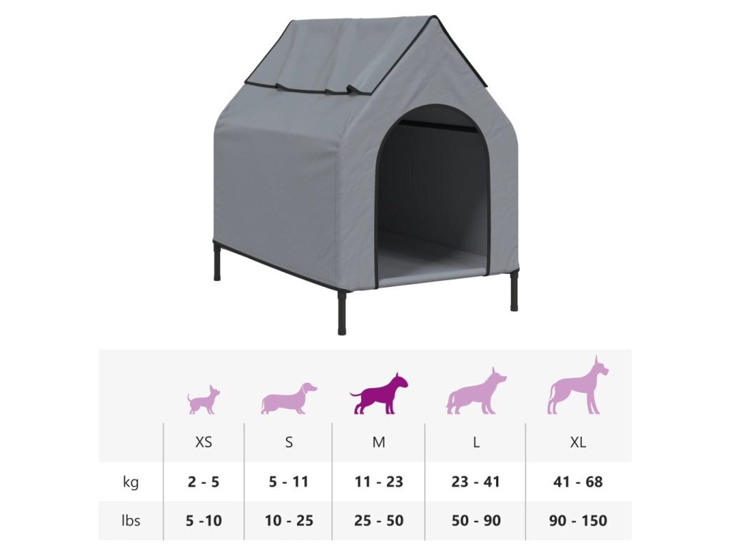 - Vyvýšený design: Vyvýšená bouda chrání psa před špínou a vlhkostí a poskytuje mu pohodlný suchý povrch na spaní.