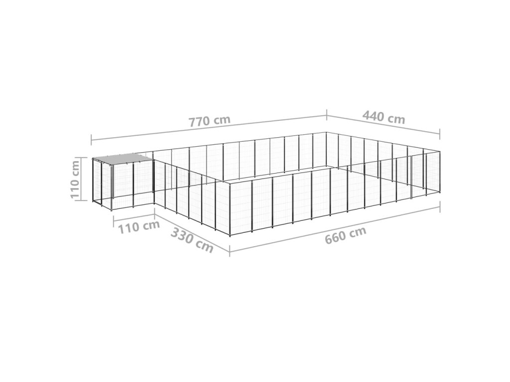 Velká klec pro psy poskytuje spoustu prostoru pro pohyb psa. Stěny z ocelového pletiva pomáhají předcházet nečekaným nehodám a zároveň umožňují volné proudění vzduchu. Výběh má robustní ocelovou konstrukci, je proto odolný a má dlouhou životnost. Je vybaven polyethylenovou střechou, která výborně vzdoruje vodě i UV záření a ochrání vaše mazlíčky před sluncem, deštěm, sněhem a dalšími povětrnostními podmínkami. Dveře jsou navíc opatřeny uzamykatelnou západkou, která zajišťuje větší bezpečnost a ochranu vašich psů.
