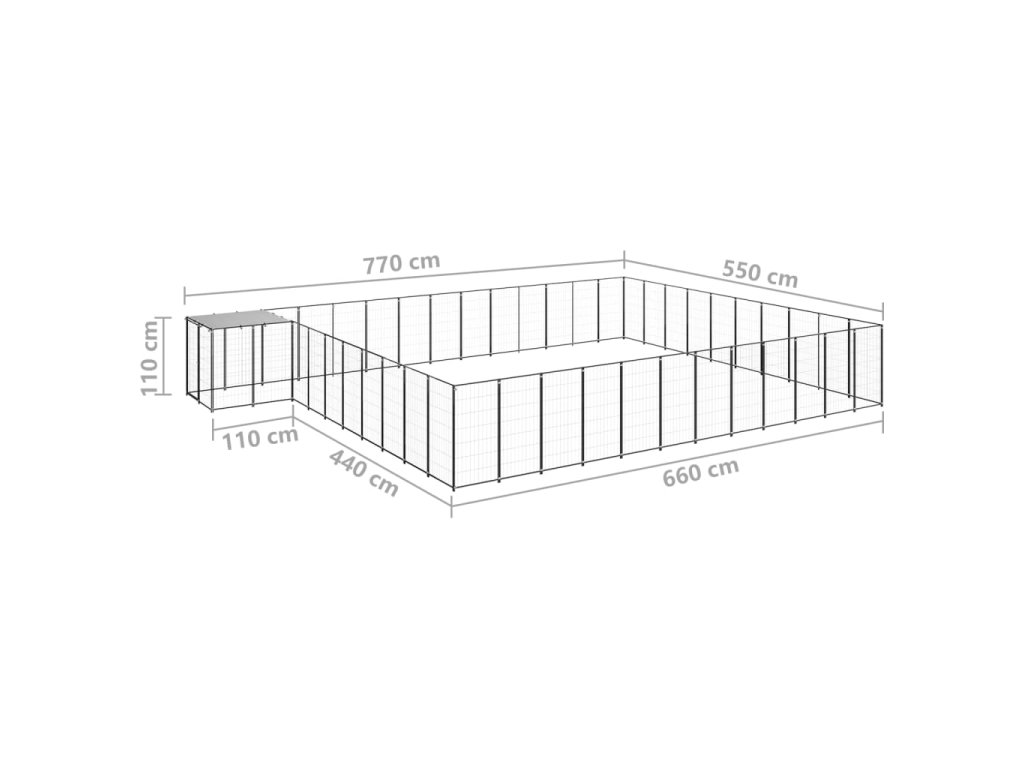 Velká klec pro psy poskytuje spoustu prostoru pro pohyb psa. Stěny z ocelového pletiva pomáhají předcházet nečekaným nehodám a zároveň umožňují volné proudění vzduchu. Výběh má robustní ocelovou konstrukci, je proto odolný a má dlouhou životnost. Je vybaven polyethylenovou střechou, která výborně vzdoruje vodě i UV záření a ochrání vaše mazlíčky před sluncem, deštěm, sněhem a dalšími povětrnostními podmínkami. Dveře jsou navíc opatřeny uzamykatelnou západkou, která zajišťuje větší bezpečnost a ochranu vašich psů.