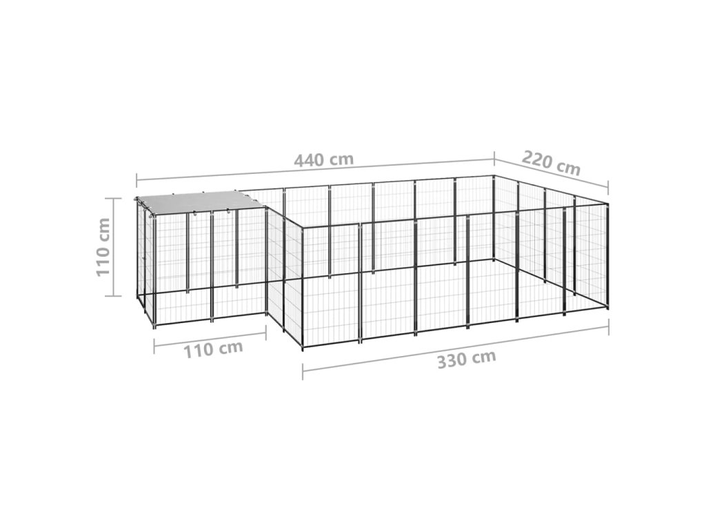 Velká klec pro psy poskytuje spoustu prostoru pro pohyb psa. Stěny z ocelového pletiva pomáhají předcházet nečekaným nehodám a zároveň umožňují volné proudění vzduchu. Výběh má robustní ocelovou konstrukci, je proto odolný a má dlouhou životnost. Je vybaven polyethylenovou střechou, která výborně vzdoruje vodě i UV záření a ochrání vaše mazlíčky před sluncem, deštěm, sněhem a dalšími povětrnostními podmínkami. Dveře jsou navíc opatřeny uzamykatelnou západkou, která zajišťuje větší bezpečnost a ochranu vašich psů.