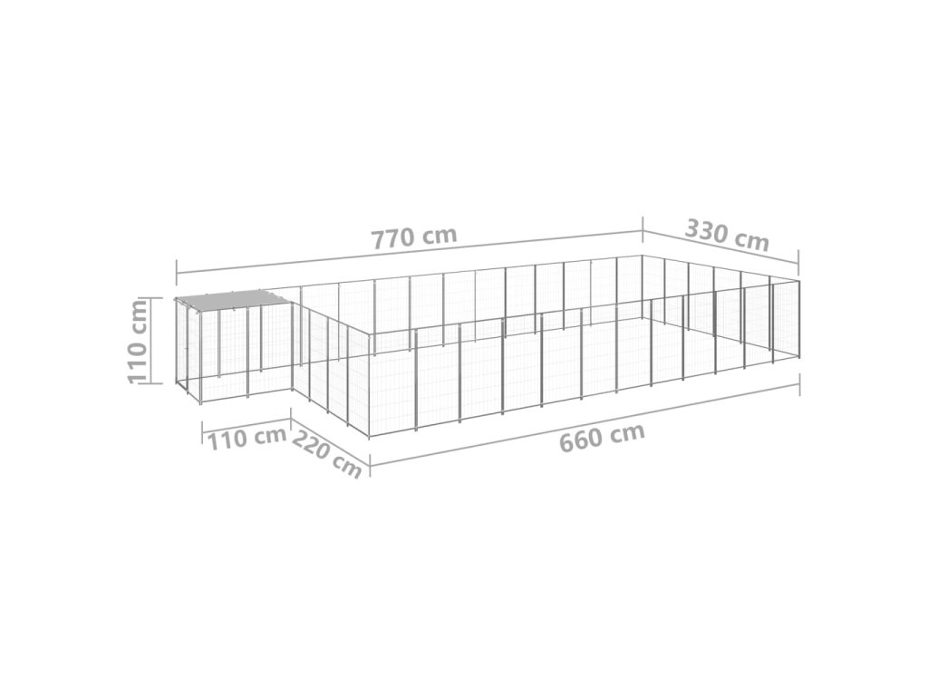 Velká klec pro psy poskytuje spoustu prostoru pro pohyb psa. Stěny z ocelového pletiva pomáhají předcházet nečekaným nehodám a zároveň umožňují volné proudění vzduchu. Výběh má robustní ocelovou konstrukci, je proto odolný a má dlouhou životnost. Je vybaven polyethylenovou střechou, která výborně vzdoruje vodě i UV záření a ochrání vaše mazlíčky před sluncem, deštěm, sněhem a dalšími povětrnostními podmínkami. Dveře jsou navíc opatřeny uzamykatelnou západkou, která zajišťuje větší bezpečnost a ochranu vašich psů.