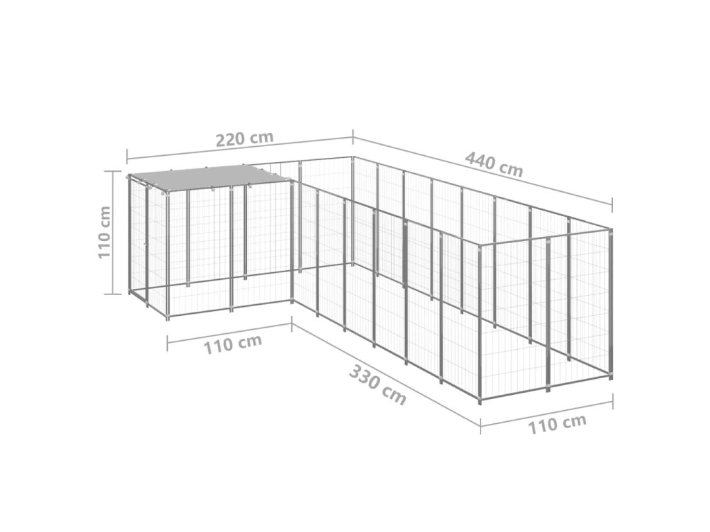 Velká klec pro psy poskytuje spoustu prostoru pro pohyb psa. Stěny z ocelového pletiva pomáhají předcházet nečekaným nehodám a zároveň umožňují volné proudění vzduchu. Výběh má robustní ocelovou konstrukci, je proto odolný a má dlouhou životnost. Je vybaven polyethylenovou střechou, která výborně vzdoruje vodě i UV záření a ochrání vaše mazlíčky před sluncem, deštěm, sněhem a dalšími povětrnostními podmínkami. Dveře jsou navíc opatřeny uzamykatelnou západkou, která zajišťuje větší bezpečnost a ochranu vašich psů.
