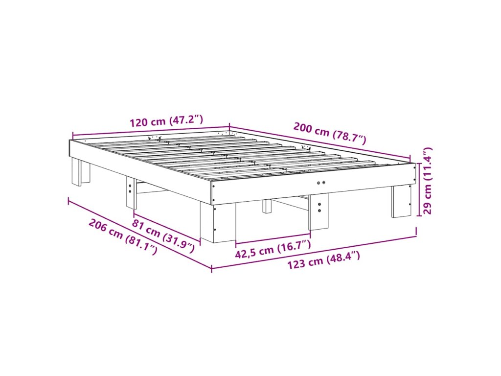 - Rozměry: 203 x 123 x 29 cm (d x š x v)