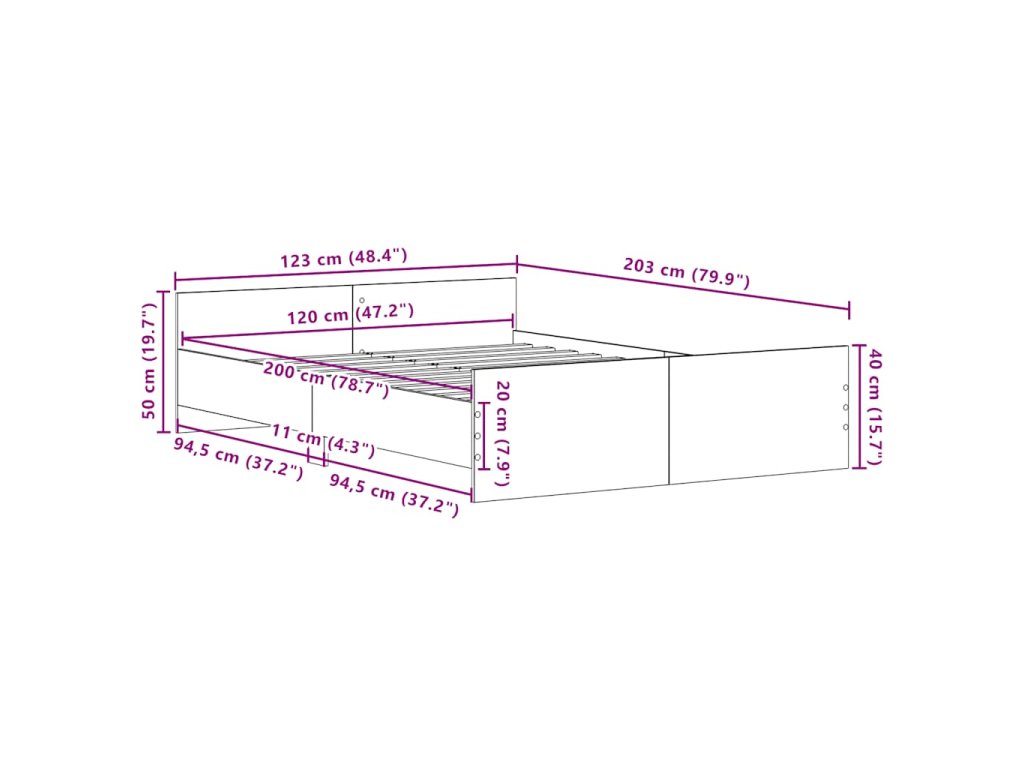 - Celkové rozměry: 203 x 123 x 50 cm (D x Š x V)