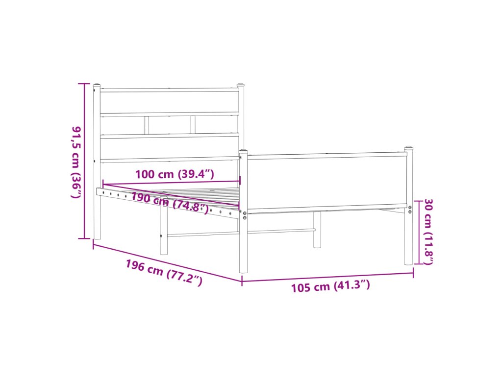 - Vhodné rozměry matrace: 100 x 190 cm (Š x D) (matrace není součástí balení)