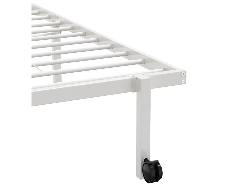 - Kovová laťková základna a nohy: Kovový rám postele je vybaven lamelovým roštem a středovými nohami, které poskytují matraci potřebnou oporu a prodyšnost.