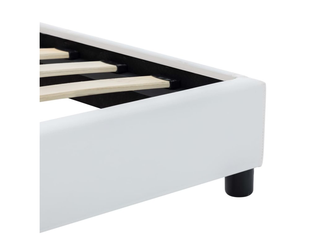 Rám postele je vyrobený z MDF a je mimořádně robustní a odolný. Ocelové nohy s práškovým nástřikem zaručují jeho dlouhou životnost. Postel je čalouněná odolnou umělou kůží, která už na pohled láká k odpočinku. Pohodlí měkkého čela oceníte při sledování televize nebo četbě knihy. Tento rám postele je vhodný pro matraci o rozměrech 140 x 200 cm.
