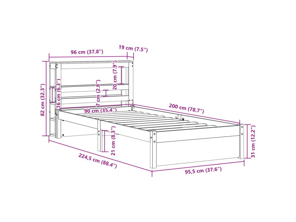 - Rozměry čela postele: 96 x 19 x 82 cm (D x Š x V)