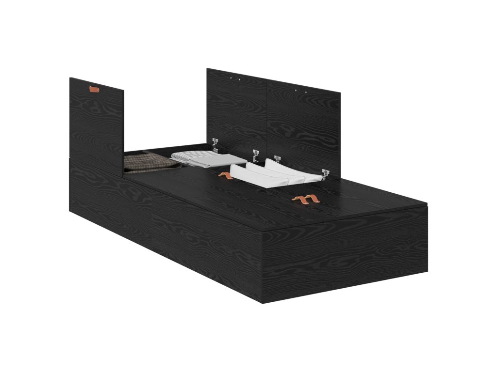 Tenhle rám postele s úložným prostorem z černého dubu spojuje funkčnost s moderním stylem, ideální pro ty, co chtějí v ložnici něco stylového. Jeho elegantní design a chytré úložiště vytvářejí efektivní prostor, který se přizpůsobí různým velikostem matrací, a vypadá přitom skvěle.