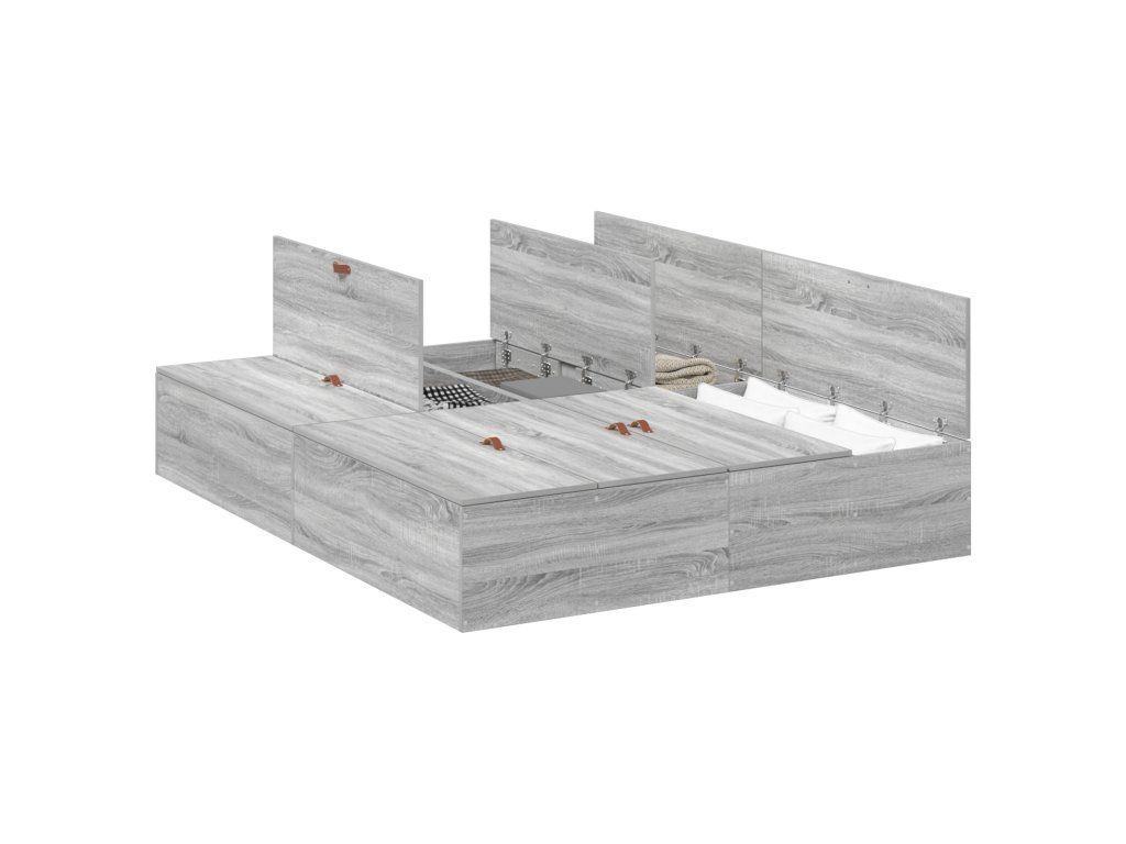 Tento moderní rám postele s úložným prostorem kombinujícím styl a funkčnost promění vaši ložnici na útulné místo. Díky elegantnímu šedému sonoma povrchu nejen že skvěle vypadá, ale také nabízí praktické úložiště pod matrací, které drží vaše věci na jednom místě.