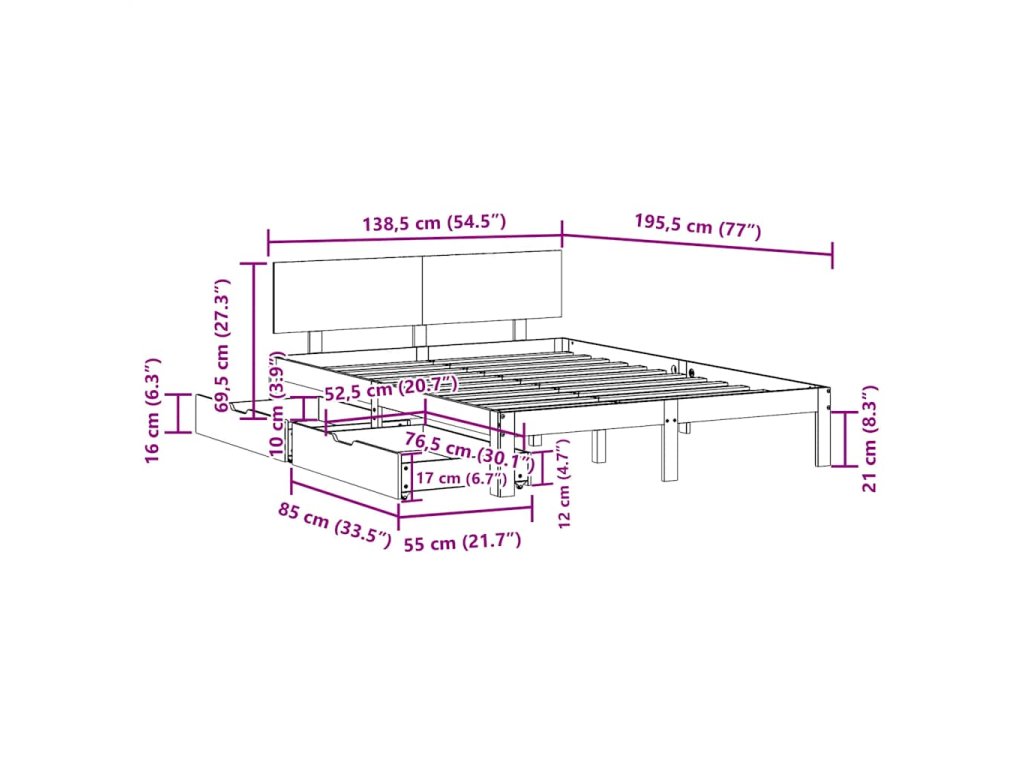 - Vhodné rozměry matrace: 135 x 190 cm (Š x D) (matrace není součástí balení)