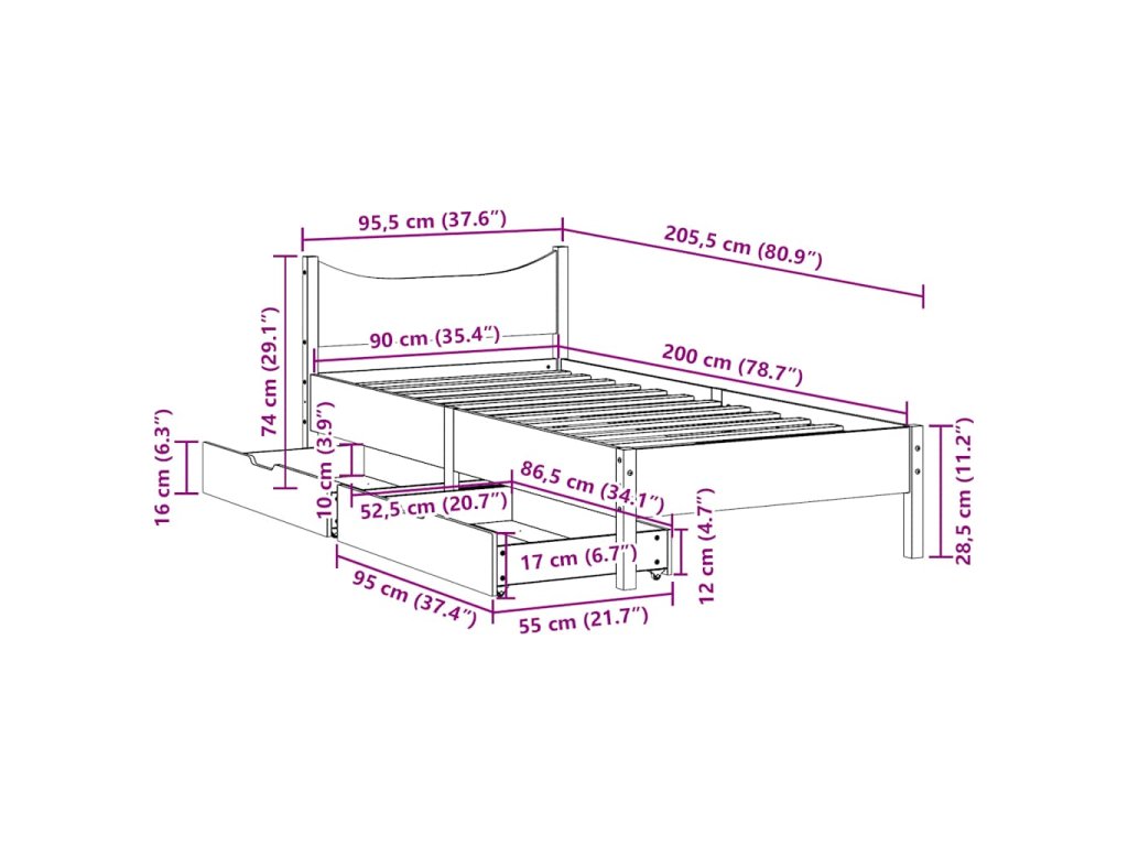 - Rozměry: 205,5 x 95,5 x 74 cm (D x Š x V)