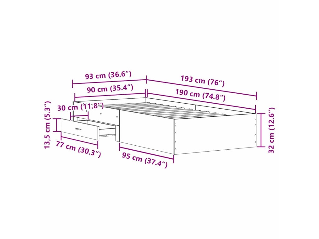 - Celkové rozměry: 193 x 93 x 32 cm (D x Š x V)