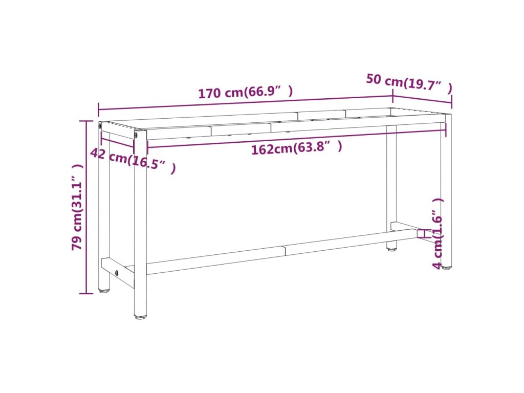 Rám má práškově lakované kovové nohy, je tedy odolný a vydrží i velkou pracovní zátěž. Horní a spodní strana jsou opatřené zesílenou lištou pro lepší oporu a pevnost. Předvrtané otvory v horní části umožňují snadnou montáž libovolné stolní desky přesně podle vašich potřeb.