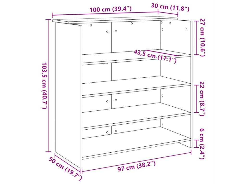 - Celkové rozměry: 100 x 50 x 103,5 cm (D x Š x V)