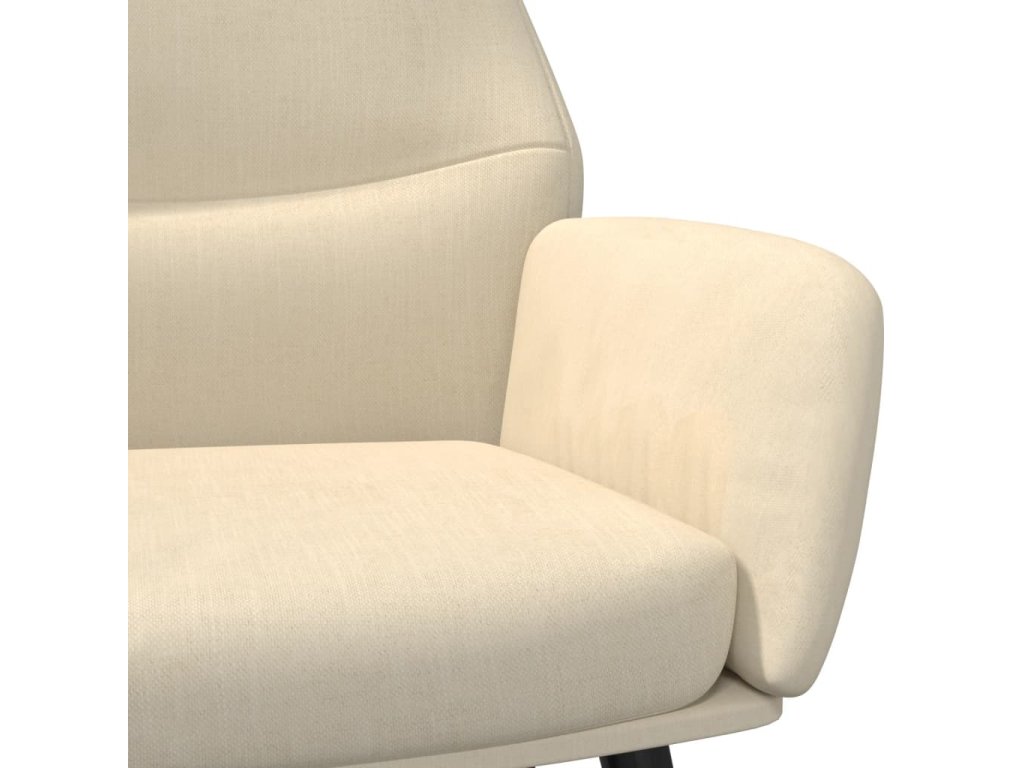 Hustě polstrované křeslo do obýváku je čalouněné na dotek měkkou látkou, a tak vám při sezení nabídne maximální komfort. Podepírá ho kovový rám, a proto je toto křeslo do obývacího pokoje odolné a stabilní. Navíc má područky, kde si můžete pohodlně opřít lokty.