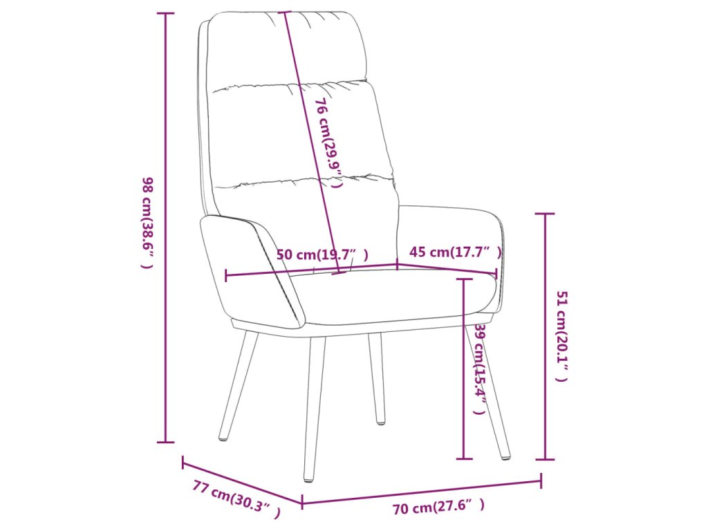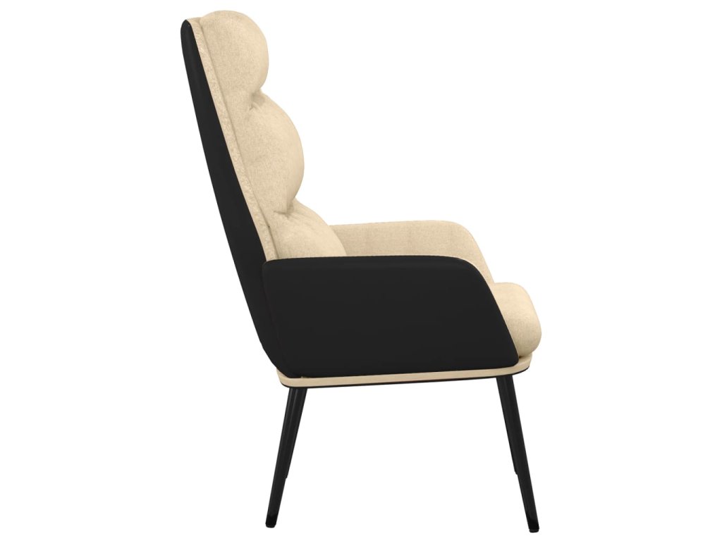Hustě polstrované relaxační křeslo je čalouněné látkou a umělou kůží, a tak vám při sezení nabídne maximální komfort. Podepírá ho kovový rám, a proto je toto křeslo do obývacího pokoje odolné a stabilní. Navíc má područky, kde si můžete pohodlně opřít lokty.