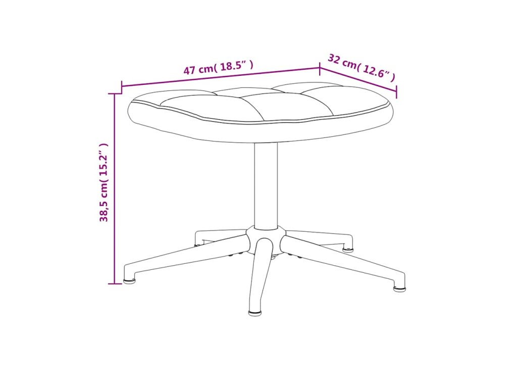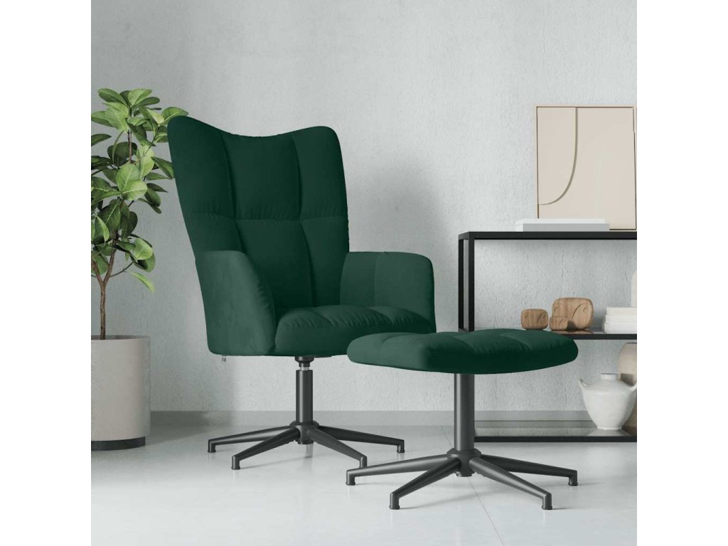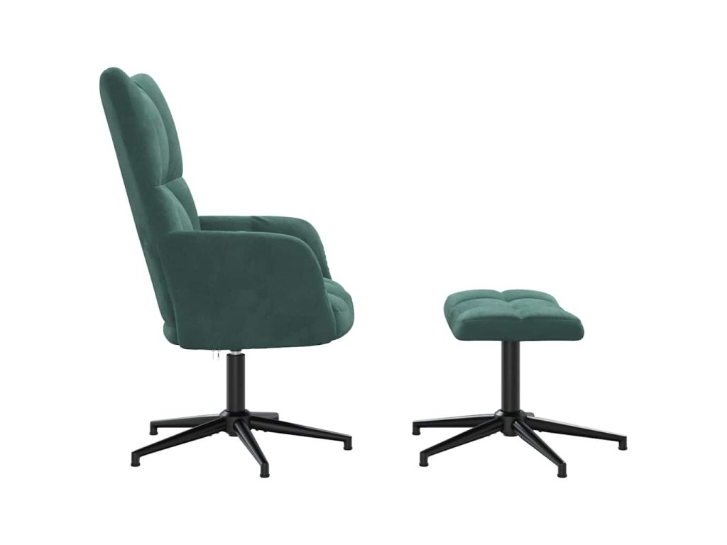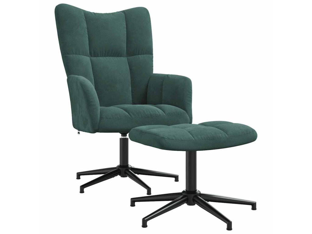 Prošívané křeslo zapůsobí svým příjemným estetickým vzhledem. Silné pěnové polstrování a čalounění z měkkého sametu vám při sezení zajistí optimální pohodlí. Tato relaxační židle se otáčí o 360 stupňů, a nabízí tak vynikající flexibilitu. Křeslo i stoličku navíc podepírá ocelový rám s křížovými nohami, jsou proto stabilní a odolné.