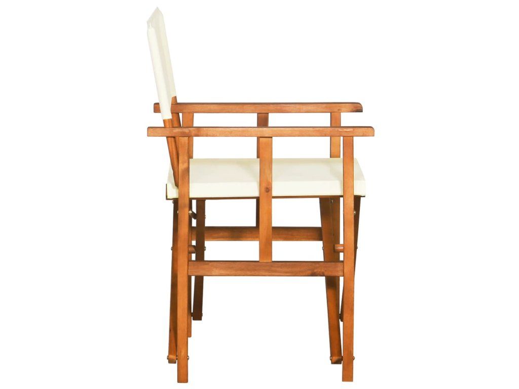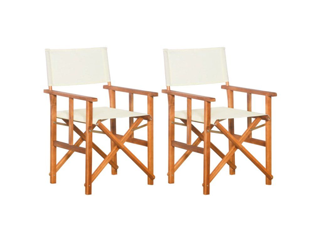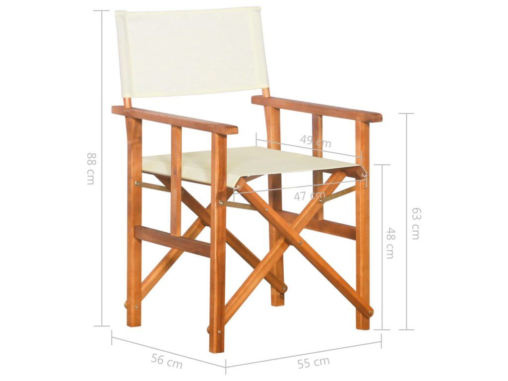 Režisérské židle jsou vyrobeny z masivního akáciového dřeva, což je vysoce odolné tropické dřevo, které nepodléhá klimatickým vlivům. Sedátka a opěradla z vysoce kvalitní látky přispívají k jejich mimořádné pohodlnosti. Pro snadné skladování či přepravu lze režisérské židle také složit.