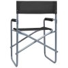 Režisérská židle je vyrobená z masivní oceli, která nepodléhá klimatickým vlivům a má dlouhou životnost. Sedátko a opěrka z vysoce kvalitní látky zaručují pohodlné posezení. Pro snadné skladování či přepravu lze naše venkovní křesílko složit.