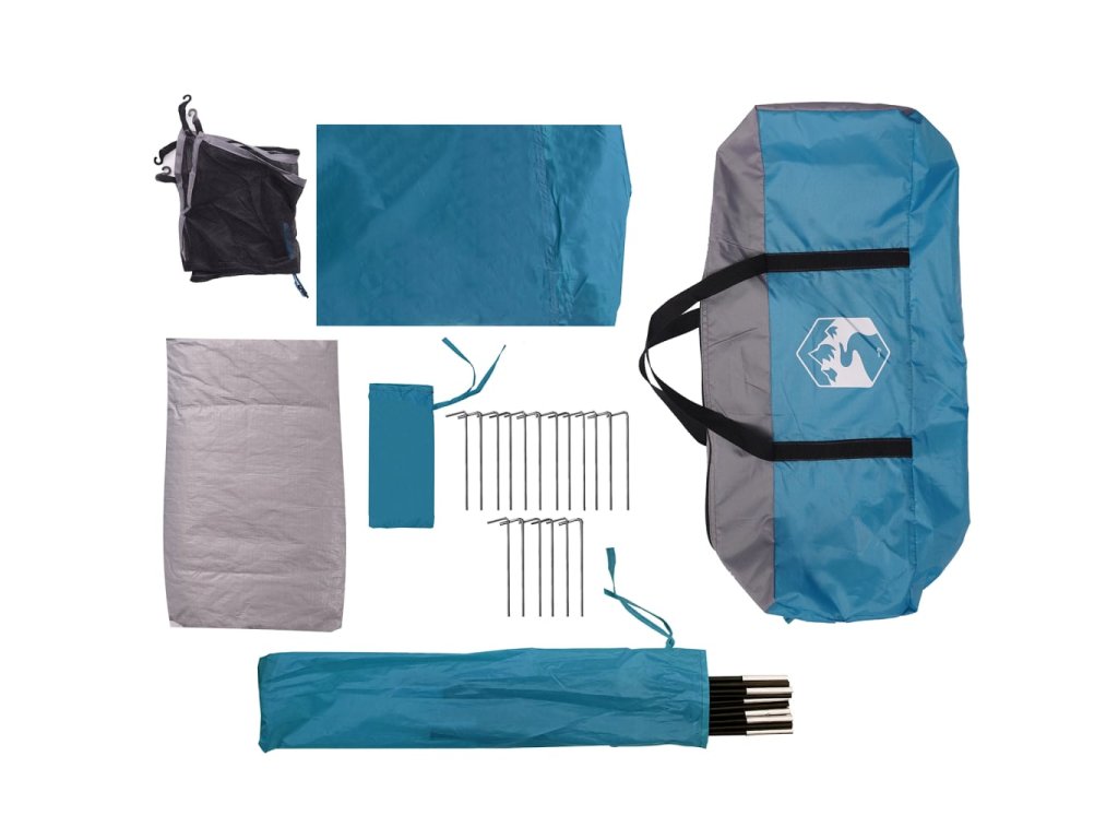 - Snadné stavění i balení: Díky vysoce flexibilním a lehkým tyčím ze skelných vláken a praktickému systému spojování pomocí kolíků a kroužků je stavění i balení stanu hračkou.