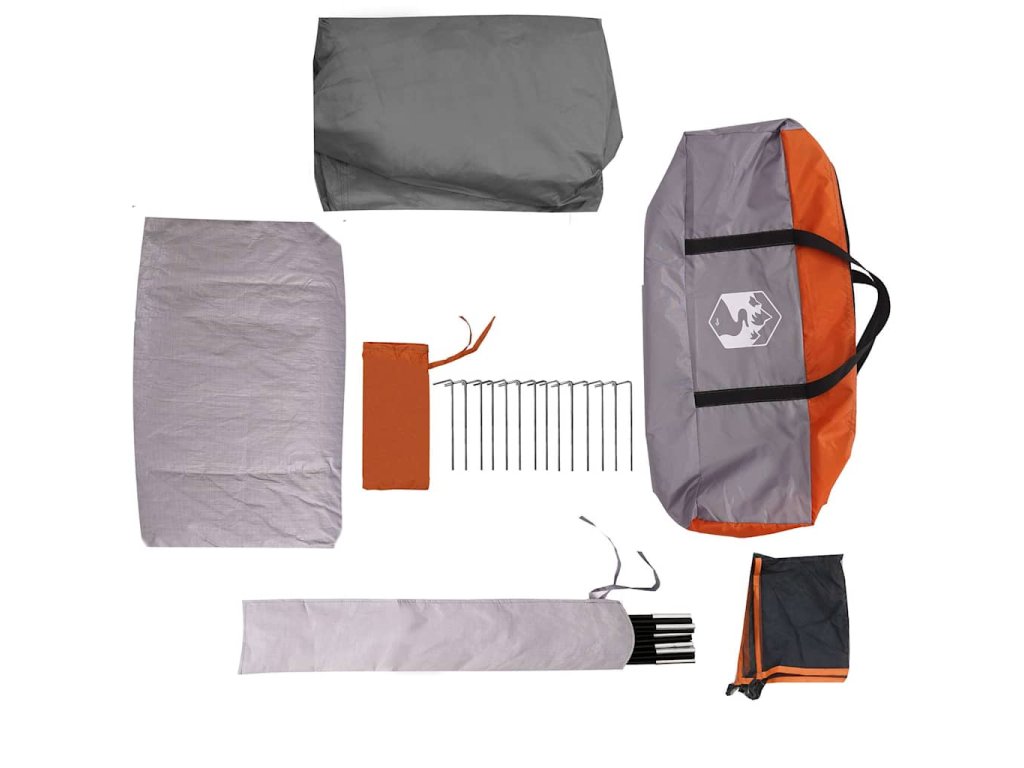 - Komplexní vodotěsnost: Tento kempingový stan je vyroben z polyesteru s PU povlakem, je nepromokavý a odolný proti větru. Podlepené švy účinně zabraňují pronikání dešťové vody, zatímco odolná podlážka pomáhá udržovat suchý a příjemný interiér.
