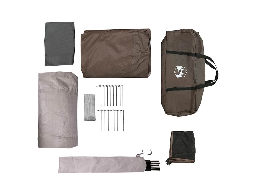 - Lehké a přenosné: Lehká skládací konstrukce umožňuje stan snadno sbalit a uložit do přiložené přenosné tašky, což vám usnadní přepravu.