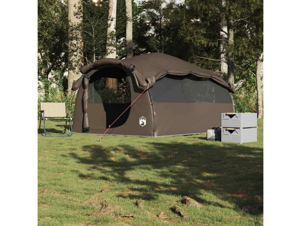 - Komplexní vodotěsnost: Tento kempingový stan je vyroben z polyesteru s PU povlakem, je nepromokavý a odolný proti větru. Podlepené švy účinně zabraňují pronikání dešťové vody, zatímco odolná podlážka pomáhá udržovat suchý a příjemný interiér.