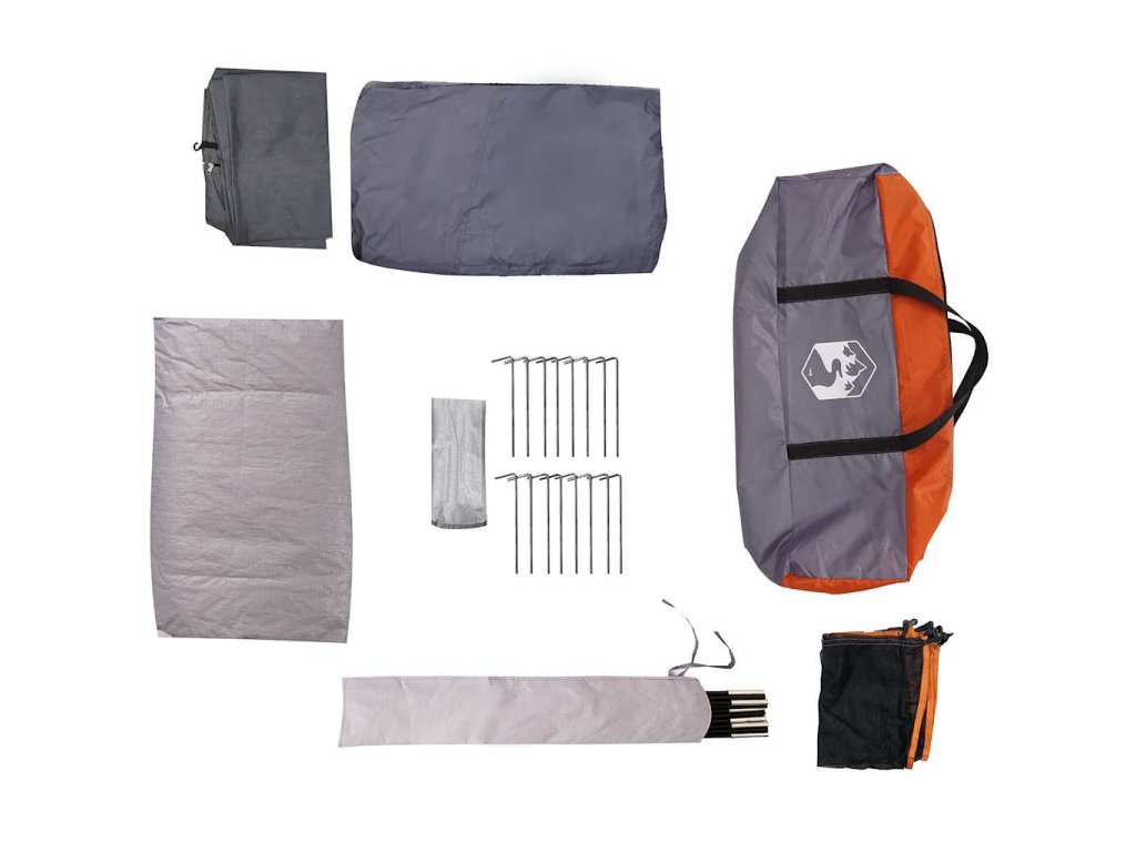 - Komplexní vodotěsnost: Tento kempingový stan je vyroben z polyesteru s PU povlakem, je nepromokavý a odolný proti větru. Podlepené švy účinně zabraňují pronikání dešťové vody, zatímco odolná podlážka pomáhá udržovat suchý a příjemný interiér.