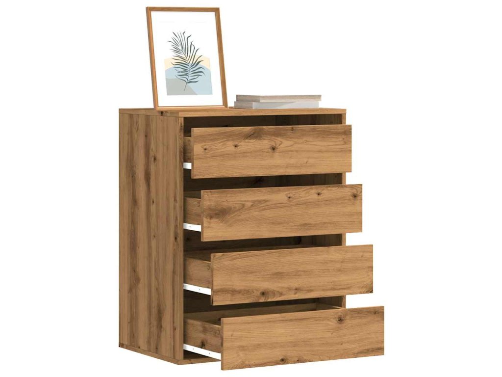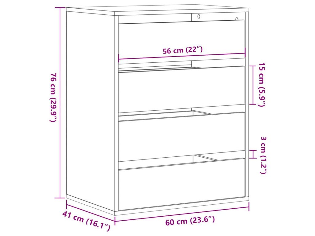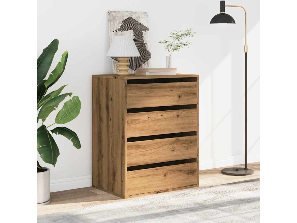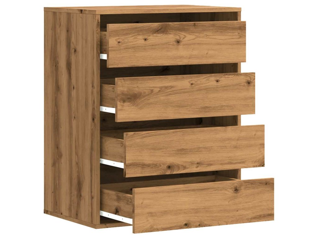 - Odolný materiál: Kompozitní dřevo je mimořádně kvalitní, má hladký povrch a vyznačuje se pevností, stabilitou a odolností proti vlhkosti. Komoda je zhotovená z kompozitního dřeva, takže se snadno čistí vlhkým hadříkem.