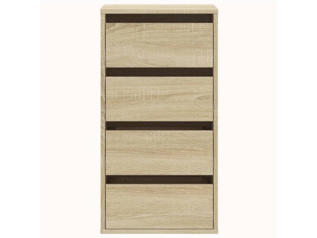 - Odolný materiál: Kompozitní dřevo je mimořádně kvalitní, má hladký povrch a vyznačuje se pevností, stabilitou a odolností proti vlhkosti. Komoda je zhotovená z kompozitního dřeva, takže se snadno čistí vlhkým hadříkem.
