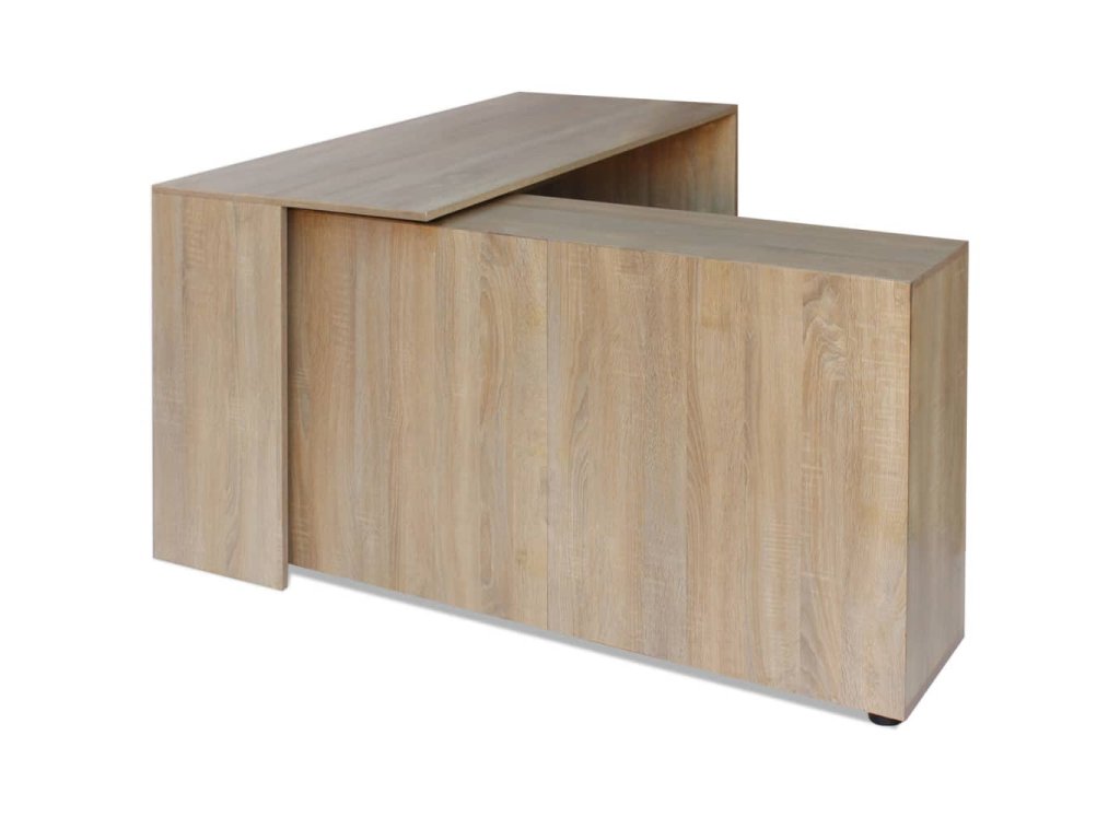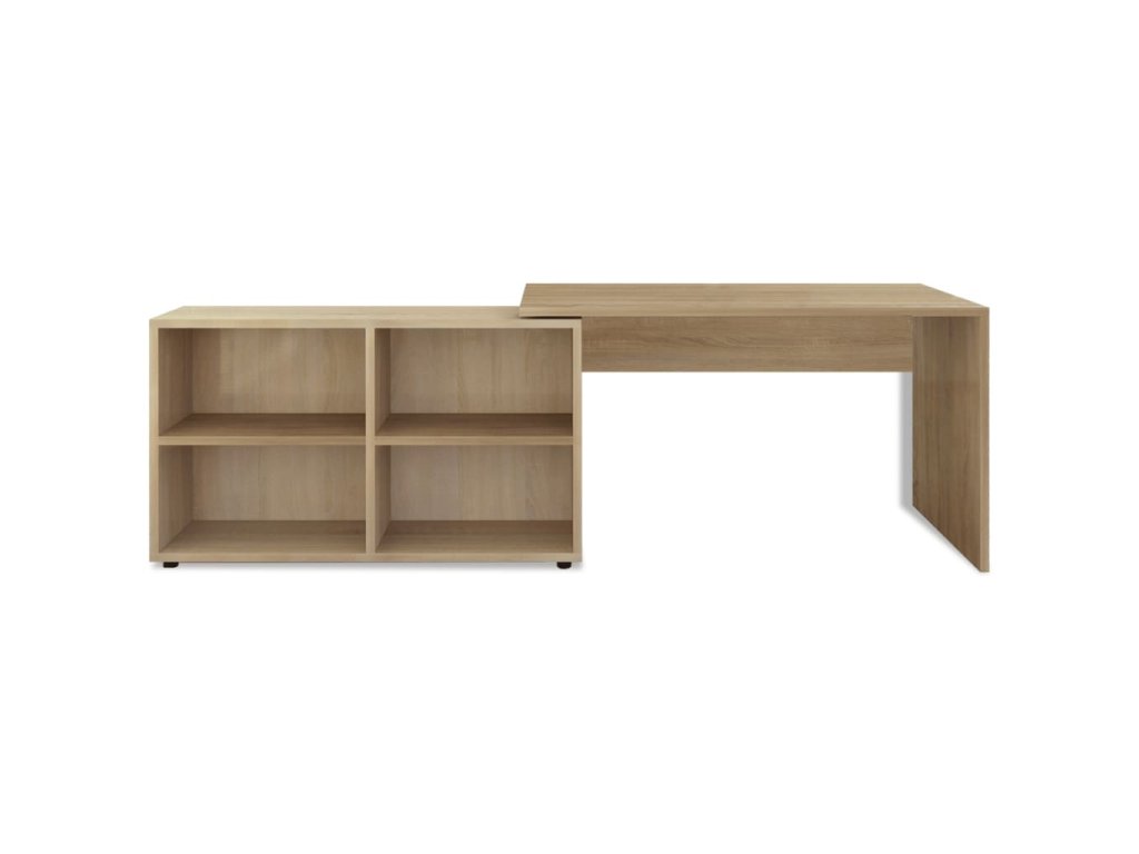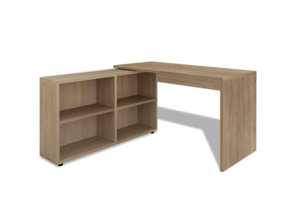 Tento moderní počítačový stůl se skládá z 1 stolu a 1 knihovničky se 4 policemi. Dá se sestavit buď jako stůl s knihovničkou v jedné linii, anebo jako rohový psací stůl ve tvaru písmene L. Montáž je snadná. Tento rohový psací stůl je vyroben z vysoce kvalitního materiálu, takže je bytelný a odolný. Odkládací regál má 4 police se spoustou úložného prostoru.