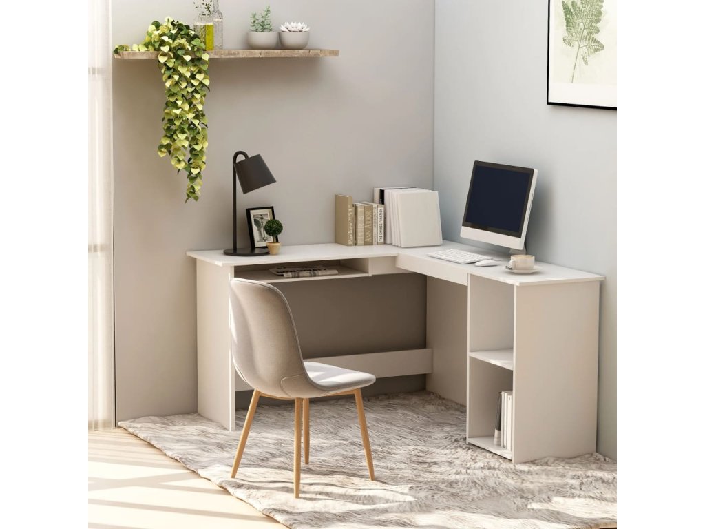 Tento moderní rohový psací stůl ve tvaru písmene L má vysouvací poličku na klávesnici a 2 otevřené police, je tedy velice praktický a zároveň se stane ústředním bodem vaší kanceláře či studovny.
