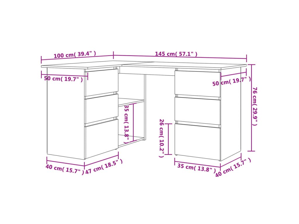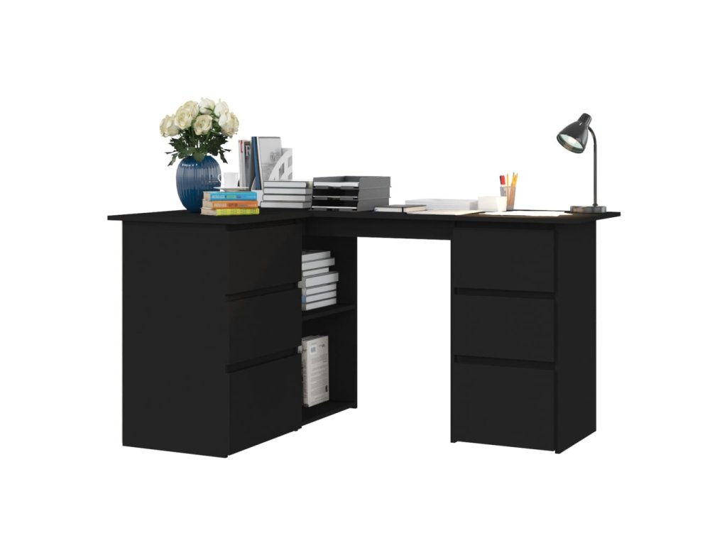 Počítačový stůl je vyrobený z kvalitních desek, je tudíž robustní, odolný a vydrží vám dlouho sloužit. Skvěle se hodí do menších kanceláří, na kolej, do bytů s omezeným prostorem nebo zkrátka všude, kde chcete co nejefektivněji využít dostupné místo. Najdete v něm také 4 zásuvky, 2 přihrádky s dvířky a 2 otevřené poličky, kam si můžete ukládat různé studijní potřeby, jako jsou knihy, složky a další užitečné věci, které potřebujete mít po ruce.