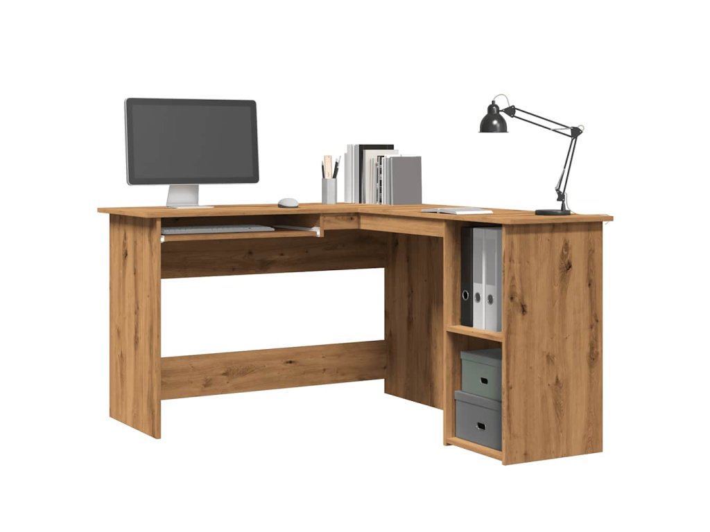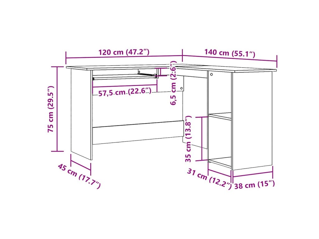 Tento moderní rohový psací stůl ve tvaru písmene L je navržený s výsuvnou deskou na klávesnici a 2 otevřenými policemi, takže je velmi praktický a stane se skvělým doplňkem vašeho studijního y pracovního prostoru!