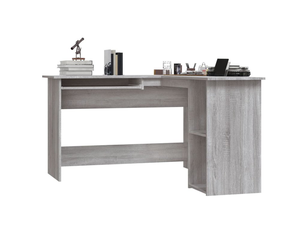 Tento moderní rohový psací stůl ve tvaru písmene L je navržený s výsuvnou deskou na klávesnici a 2 otevřenými policemi, takže je velmi praktický a stane se skvělým doplňkem vašeho studijního y pracovního prostoru!