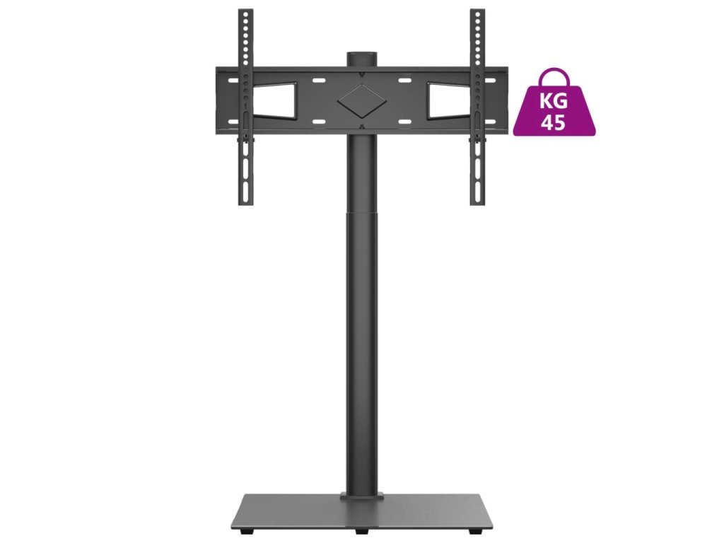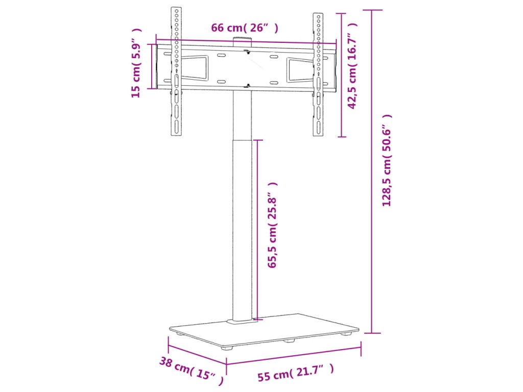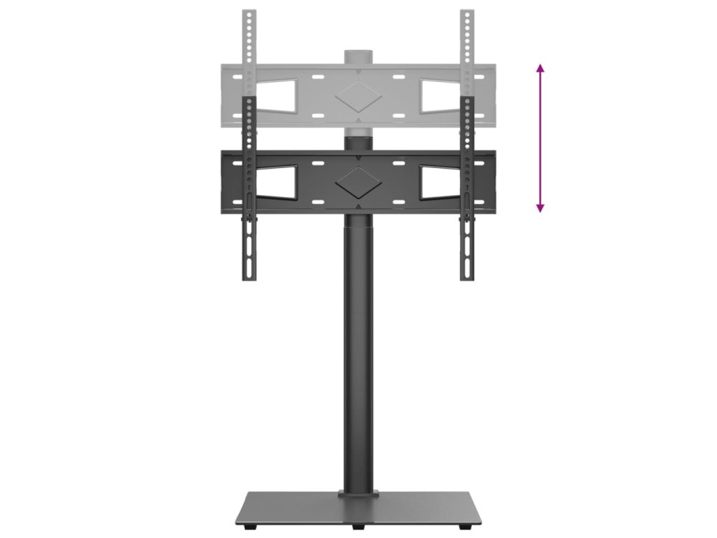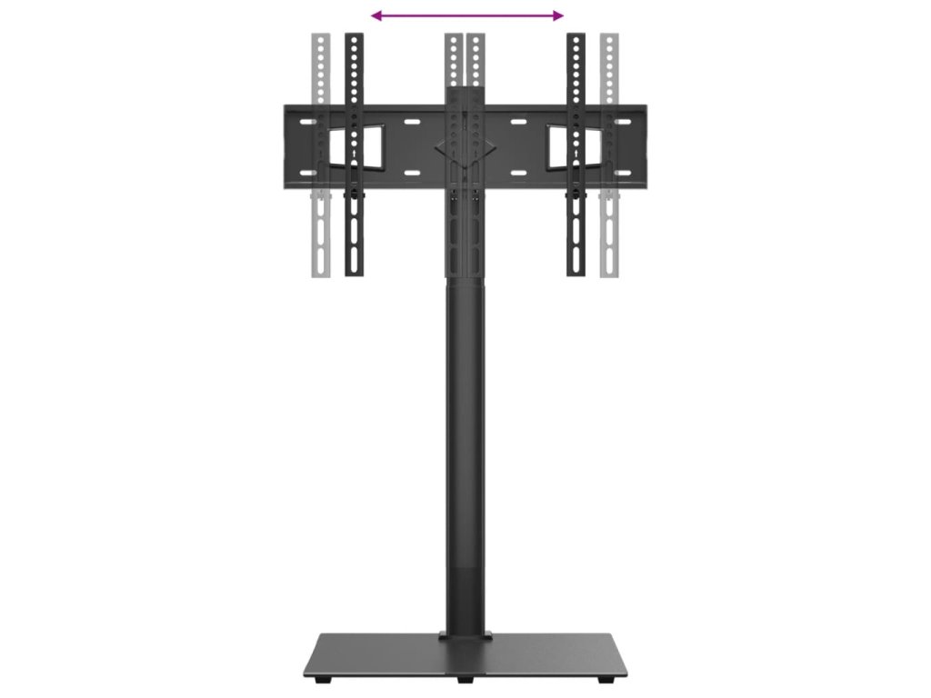 - Ujistěte se, že je šířka vašeho televizoru vhodná pro TV stojan a že výška od držáku po horní skleněný stolek také odpovídá výšce vašeho televizoru.