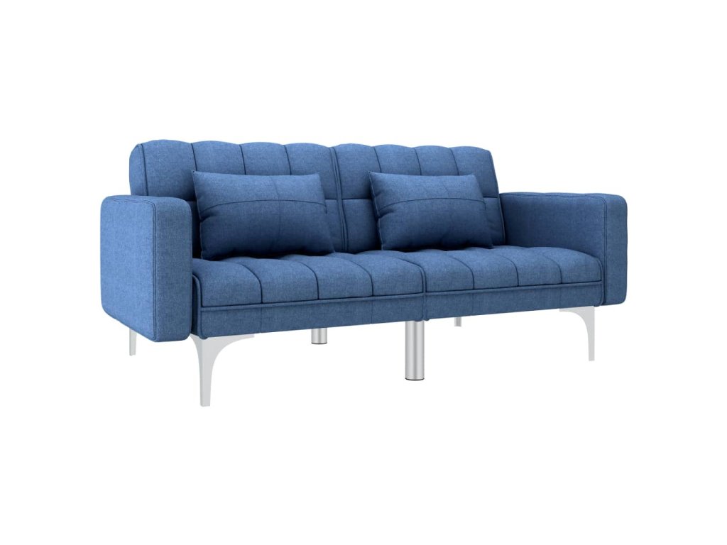 Dřevěný rám a kovové nohy jsou zárukou bytelnosti, zatímco silné polstrování přináší velký komfort. Rozkládací pohovka se dá snadno a rychle rozložit na lůžko a zase složit nazpět. Jako pohovka vám umožní vybrat si ze 3 různých poloh opěradla. Součástí balení jsou také dva polštáře pro ještě pohodlnější sezení.