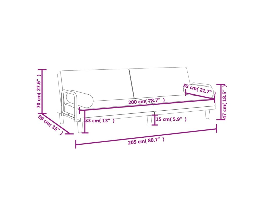 - Celkové rozměry (při úplném rozložení): 205 x 100 x 47 cm (Š x H x V)