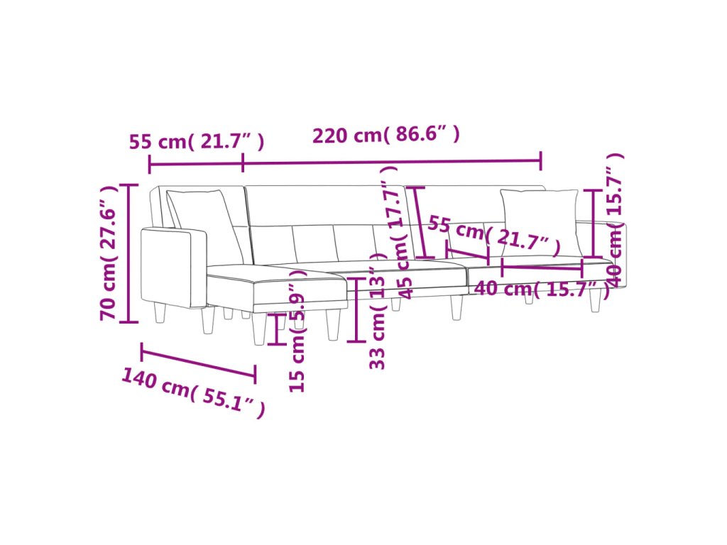 - Celkové rozměry (při úplném rozložení): 220 x 100 x 33 cm (Š x H x V)