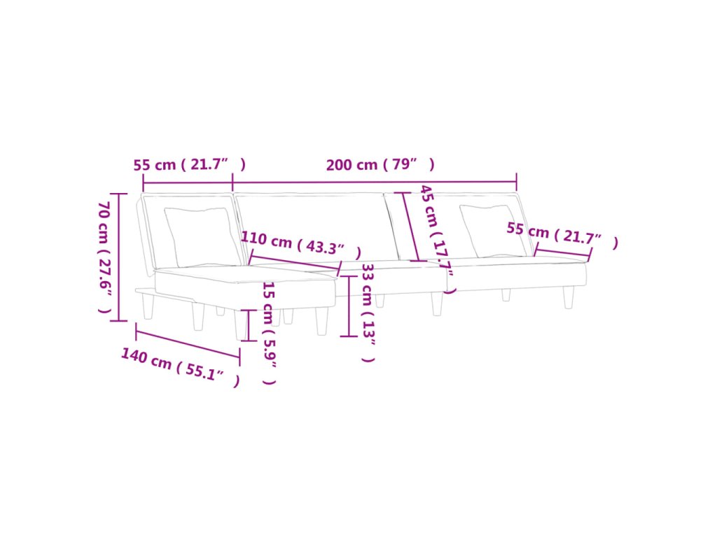 - Výrobek je tvořen rozkládací pohovkou a lenoškou. Lenošku můžete umístit vpravo i vlevo, jak vám to vyhovuje.