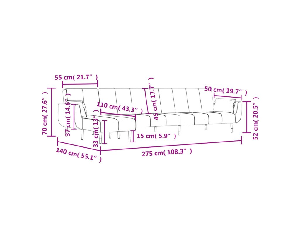 - Celkové rozměry: 275 x 140 x 70 cm (Š x H x V)